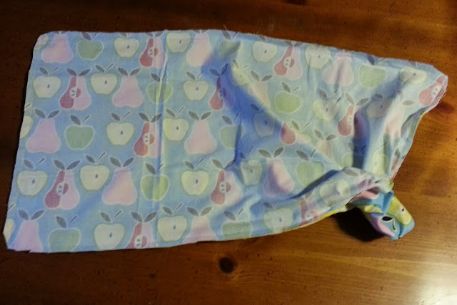 Turn the cover right side out through the hole that we left open on the lower right edge.